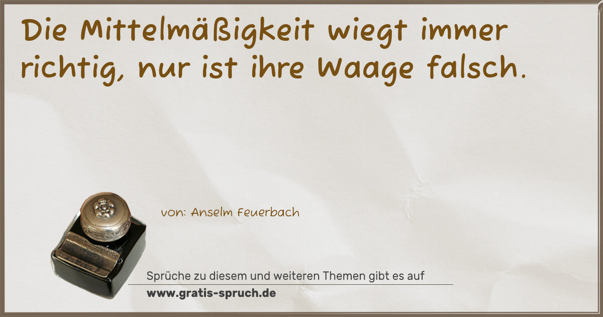 Die Mittelmäßigkeit wiegt immer richtig, nur ist ihre Waage falsch.