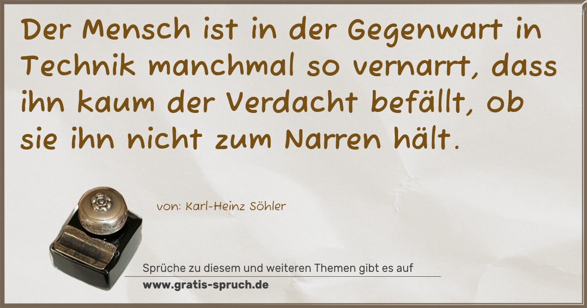 Der Mensch ist in der Gegenwart in Technik manchmal so vernarrt, dass ihn kaum der Verdacht befällt, ob sie ihn nicht zum Narren hält.