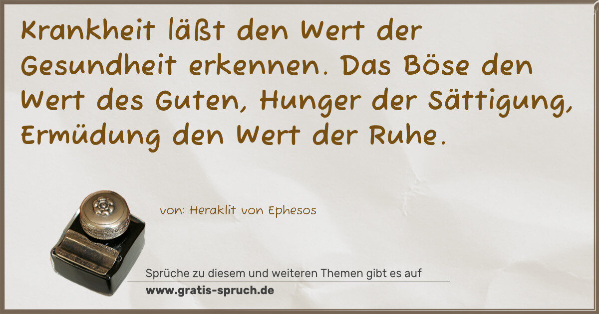 Krankheit läßt den Wert der Gesundheit erkennen. Das Böse den Wert des Guten, Hunger der Sättigung, Ermüdung den Wert der Ruhe.