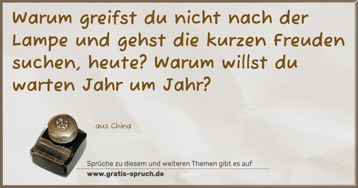 Warum greifst du nicht nach der Lampe und gehst die kurzen Freuden suchen, heute? Warum willst du warten Jahr um Jahr?