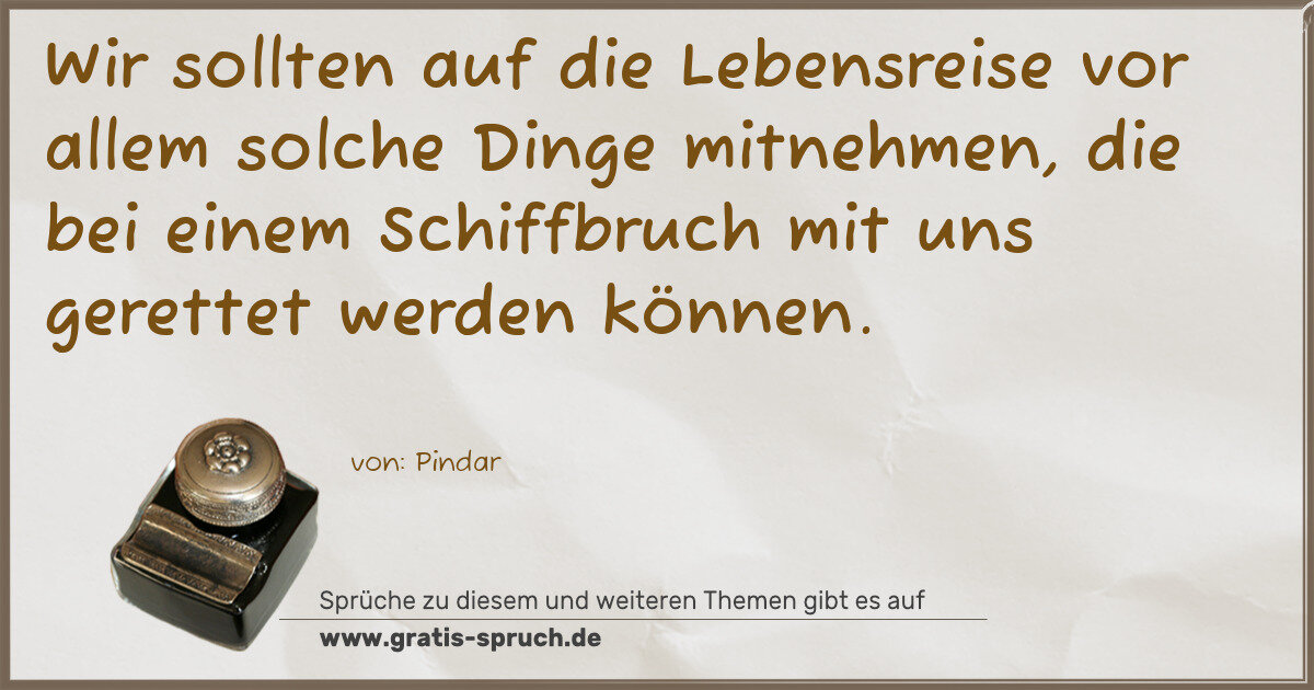 Wir sollten auf die Lebensreise vor allem solche Dinge mitnehmen, die bei einem Schiffbruch mit uns gerettet werden können.