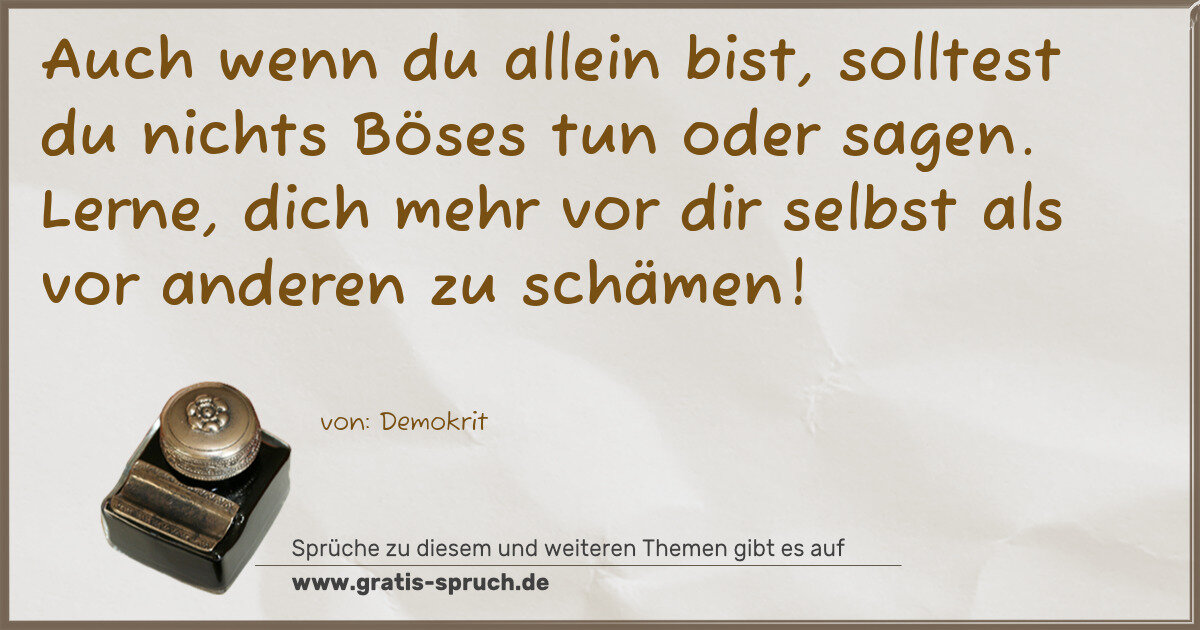 Auch wenn du allein bist, solltest du nichts Böses tun oder sagen. Lerne, dich mehr vor dir selbst als vor anderen zu schämen!