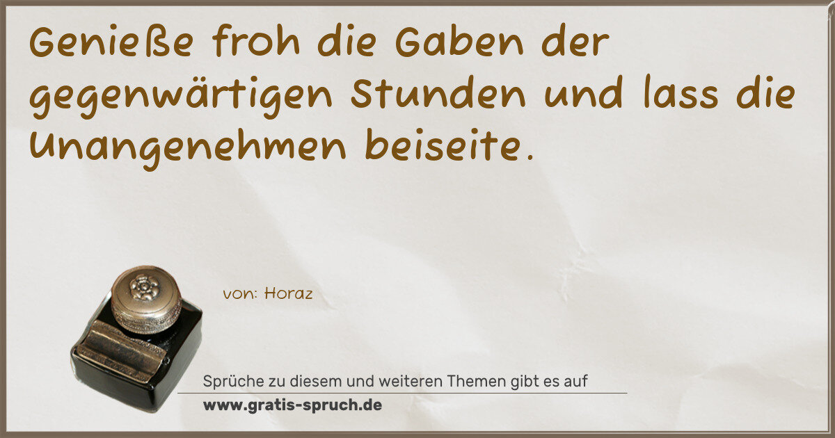 Genieße froh die Gaben der gegenwärtigen Stunden und lass die Unangenehmen beiseite.