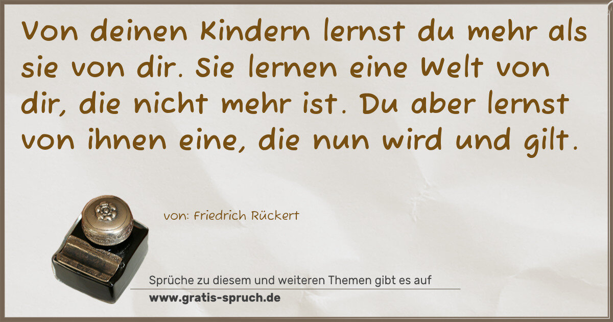 Von deinen Kindern lernst du mehr als sie von dir. Sie lernen eine Welt von dir, die nicht mehr ist. Du aber lernst von ihnen eine, die nun wird und gilt.