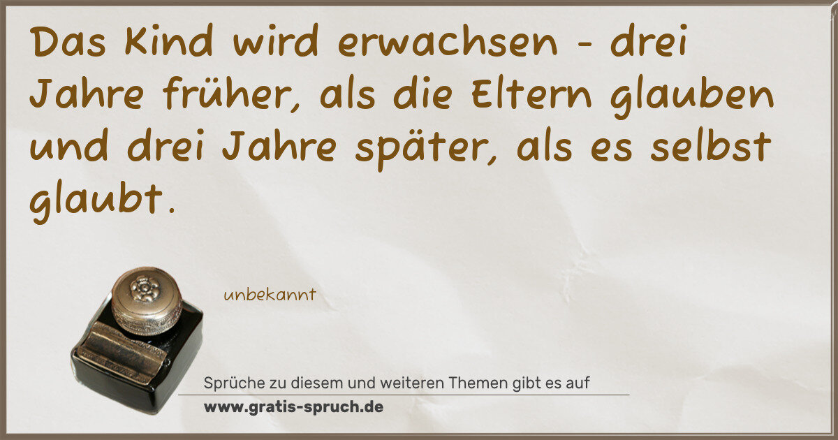 Das Kind wird erwachsen - drei Jahre früher, als die Eltern glauben und drei Jahre später, als es selbst glaubt.