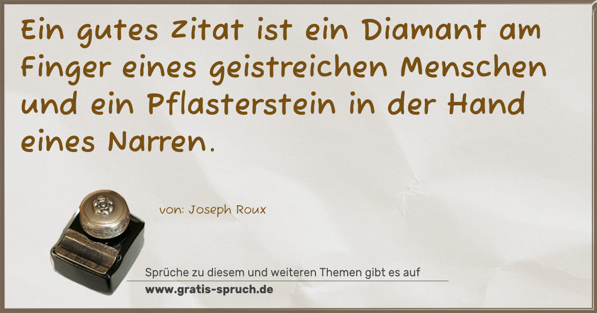 Ein gutes Zitat ist ein Diamant am Finger eines geistreichen Menschen und ein Pflasterstein in der Hand eines Narren.