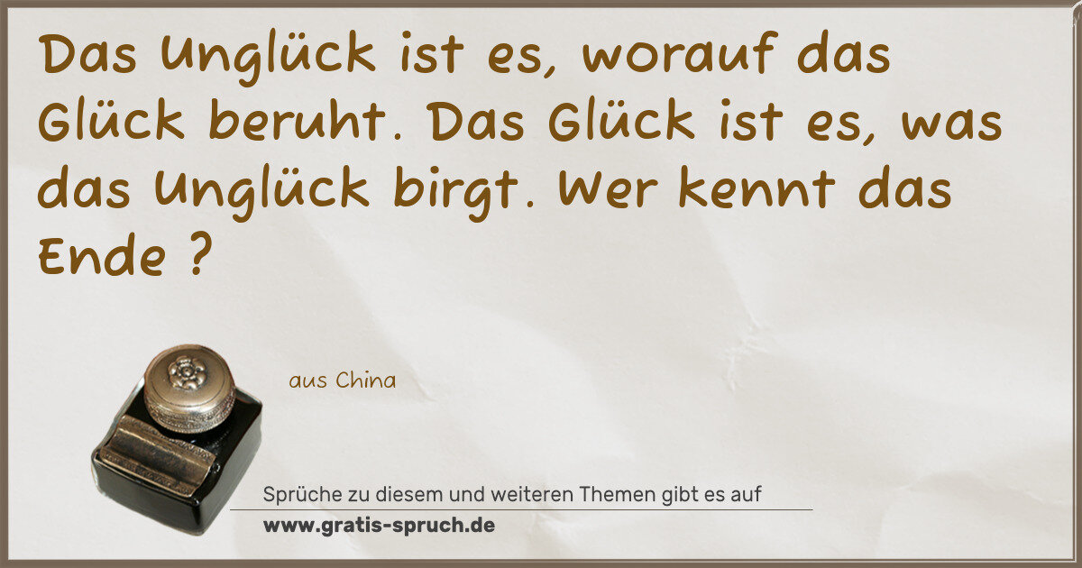 Das Unglück ist es, worauf das Glück beruht. Das Glück ist es, was das Unglück birgt. Wer kennt das Ende ?