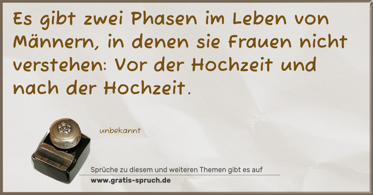 Es gibt zwei Phasen im Leben von Männern, in denen sie Frauen nicht verstehen: Vor der Hochzeit und nach der Hochzeit.