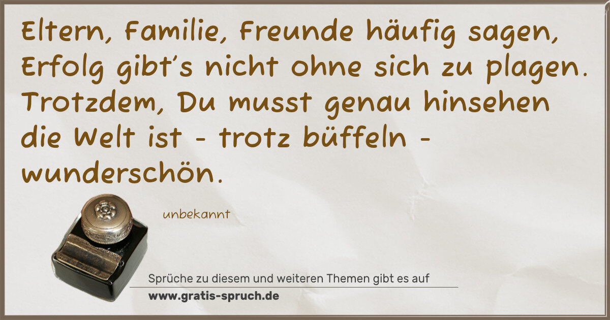 Eltern, Familie, Freunde häufig sagen, Erfolg gibt’s nicht ohne sich zu plagen. Trotzdem, Du musst genau hinsehen die Welt ist - trotz büffeln - wunderschön.