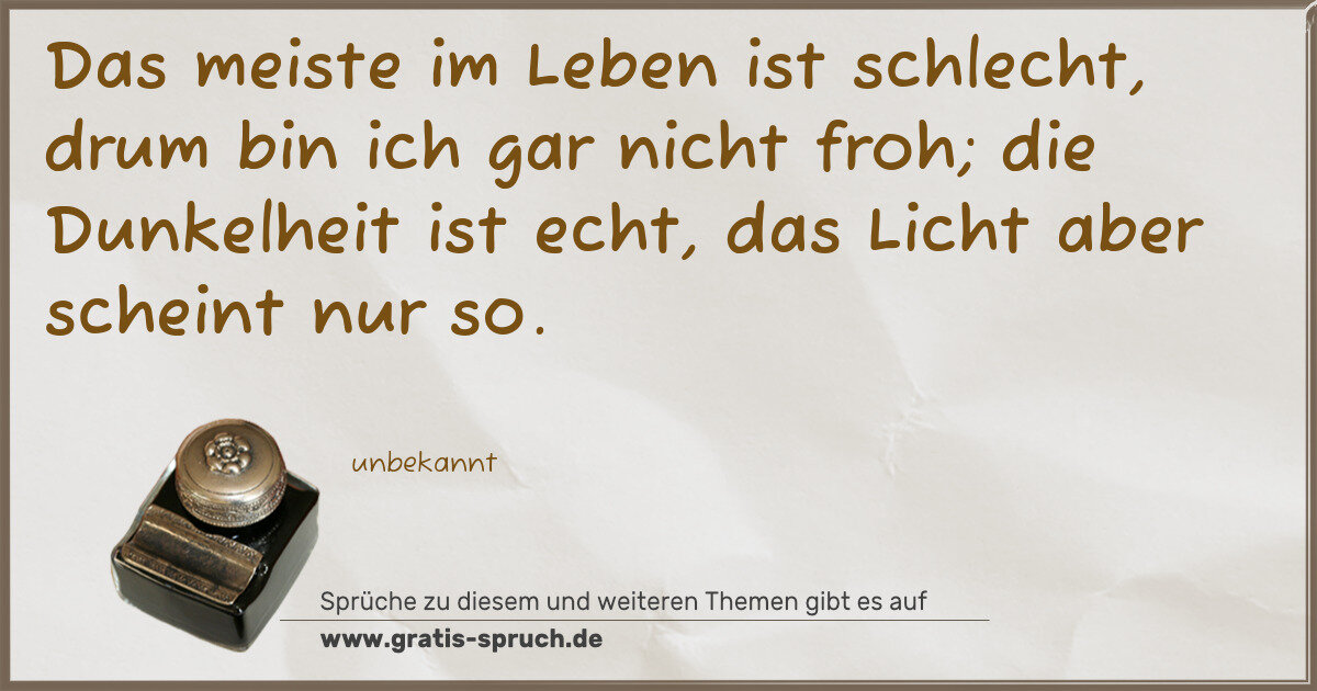 Das meiste im Leben ist schlecht, drum bin ich gar nicht froh; die Dunkelheit ist echt, das Licht aber scheint nur so.