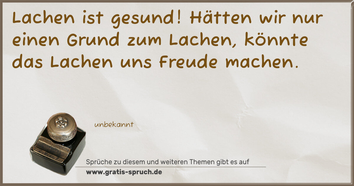 Lachen ist gesund! Hätten wir nur einen Grund zum Lachen, könnte das Lachen uns Freude machen.