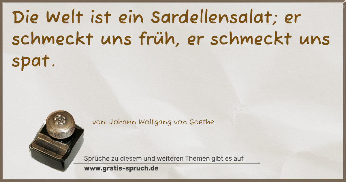 Die Welt ist ein Sardellensalat; er schmeckt uns früh, er schmeckt uns spat.