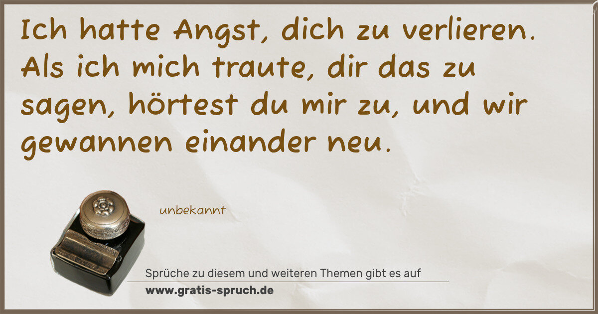 Ich hatte Angst, dich zu verlieren. Als ich mich traute, dir das zu sagen, hörtest du mir zu, und wir gewannen einander neu.