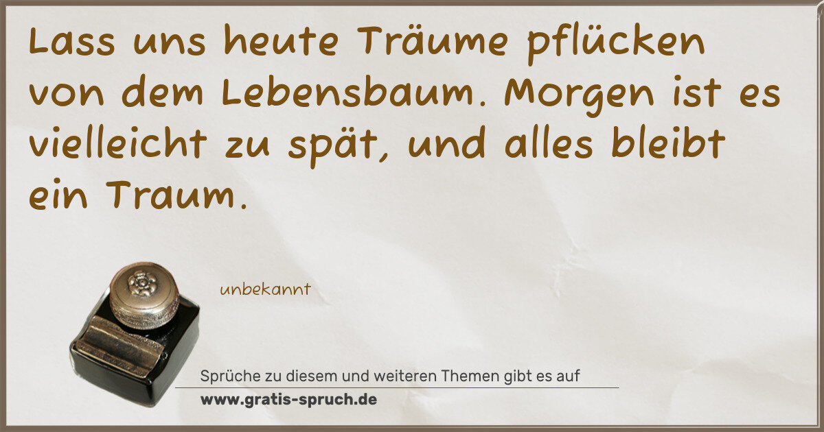 Lass uns heute Träume pflücken von dem Lebensbaum. Morgen ist es vielleicht zu spät, und alles bleibt ein Traum.