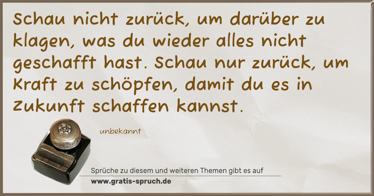 Schau nicht zurück, um darüber zu klagen, was du wieder alles nicht geschafft hast. Schau nur zurück, um Kraft zu schöpfen, damit du es in Zukunft schaffen kannst.