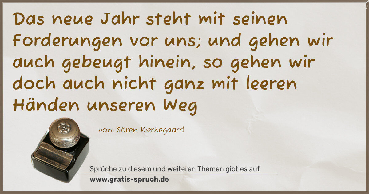 Das neue Jahr steht mit seinen Forderungen vor uns; und gehen wir auch gebeugt hinein, so gehen wir doch auch nicht ganz mit leeren Händen unseren Weg
