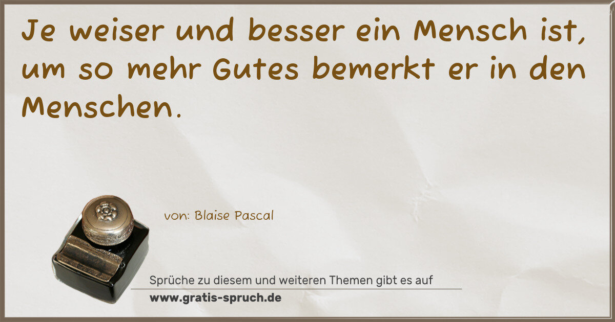 Je weiser und besser ein Mensch ist, um so mehr Gutes bemerkt er in den Menschen.