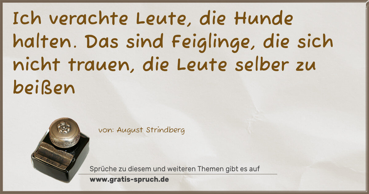 Ich verachte Leute, die Hunde halten. Das sind Feiglinge, die sich nicht trauen, die Leute selber zu beißen