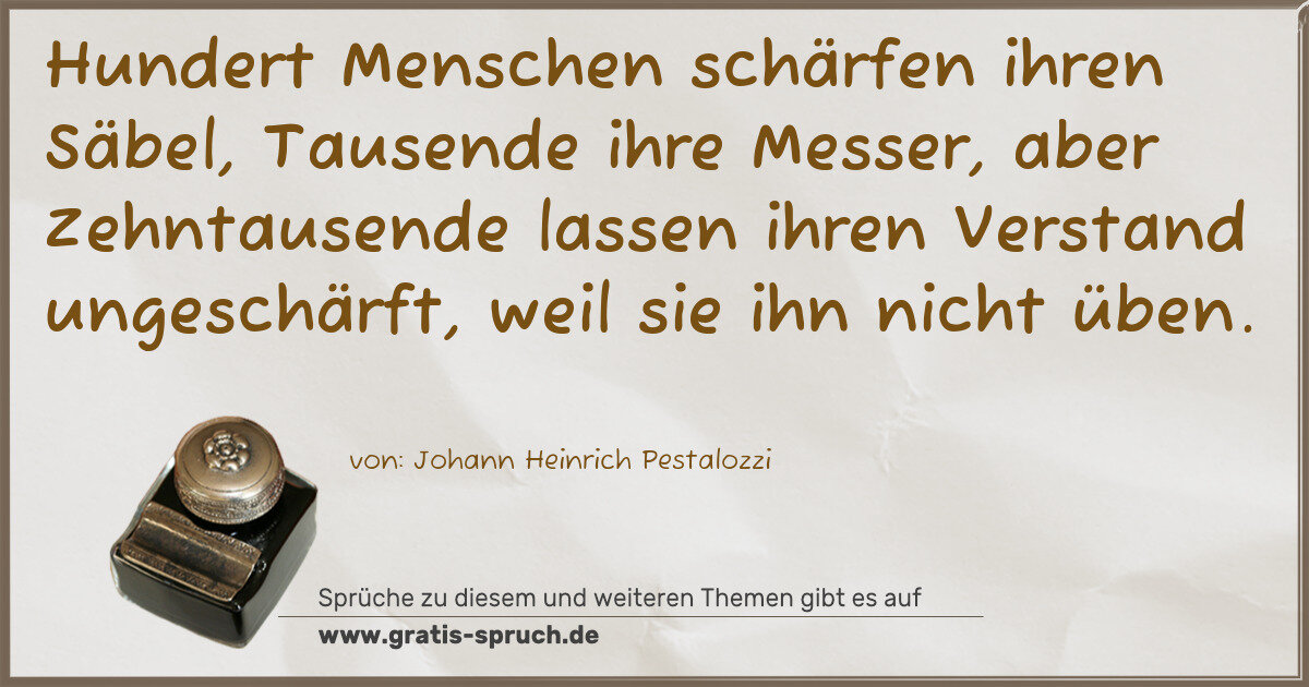 Hundert Menschen schärfen ihren Säbel, Tausende ihre Messer, aber Zehntausende lassen ihren Verstand ungeschärft, weil sie ihn nicht üben.