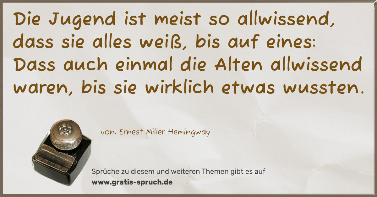Die Jugend ist meist so allwissend, dass sie alles weiß, bis auf eines: Dass auch einmal die Alten allwissend waren, bis sie wirklich etwas wussten.