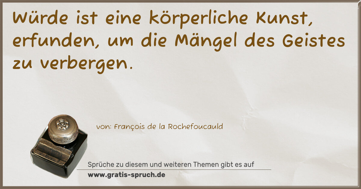 Würde ist eine körperliche Kunst, erfunden, um die Mängel des Geistes zu verbergen.