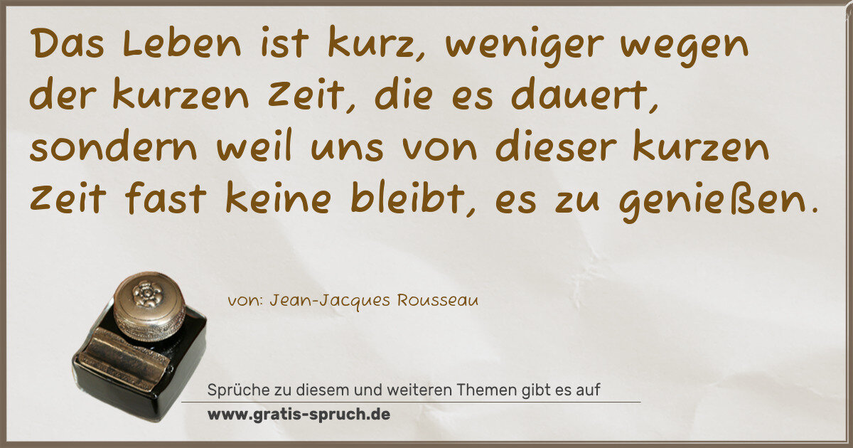 Das Leben ist kurz, weniger wegen der kurzen Zeit, die es dauert, sondern weil uns von dieser kurzen Zeit fast keine bleibt, es zu genießen.