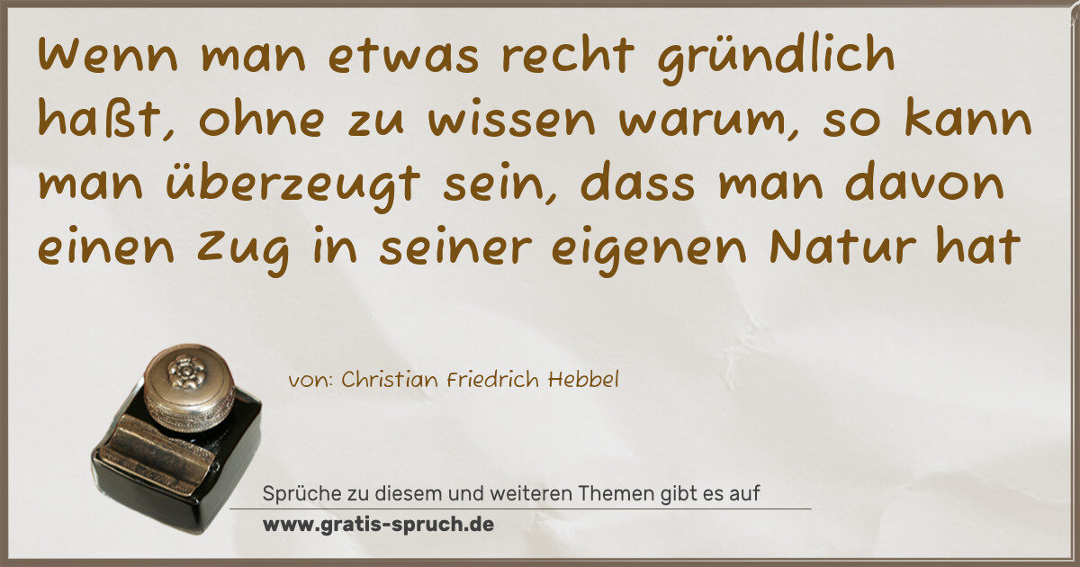 Wenn man etwas recht gründlich haßt, ohne zu wissen warum, so kann man überzeugt sein, dass man davon einen Zug in seiner eigenen Natur hat