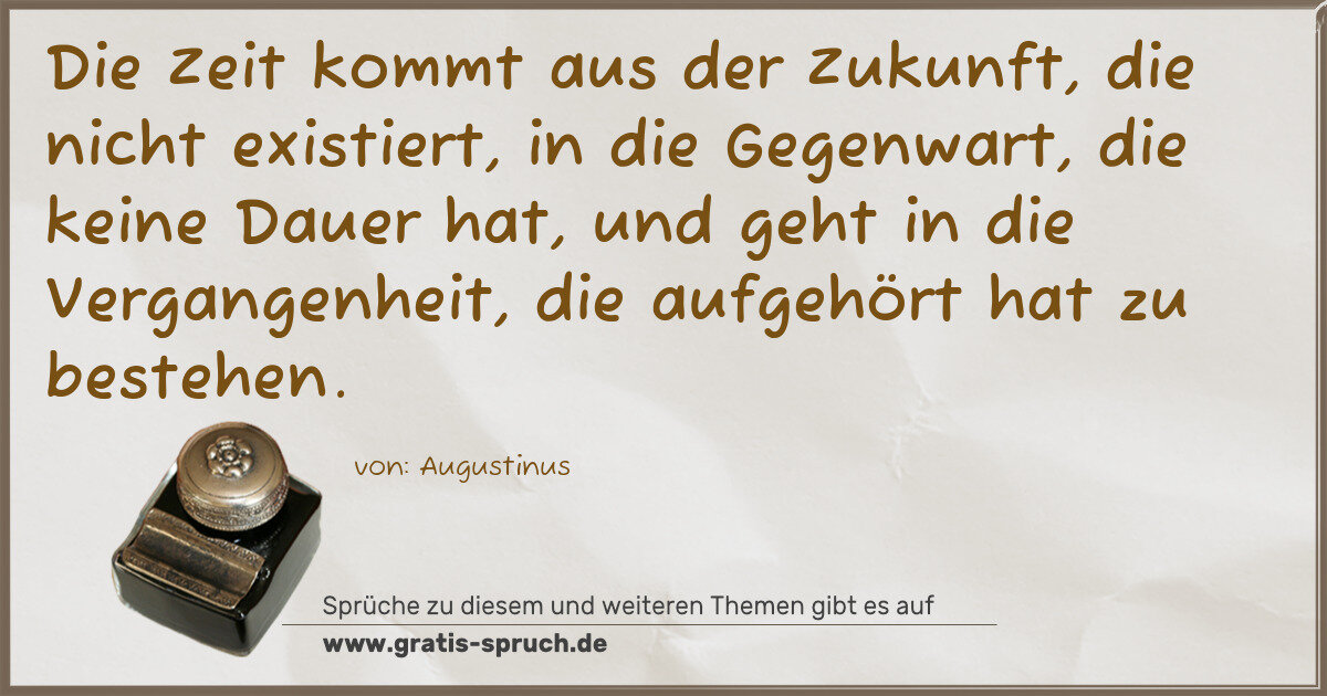 Die Zeit kommt aus der Zukunft, die nicht existiert, in die Gegenwart, die keine Dauer hat, und geht in die Vergangenheit, die aufgehört hat zu bestehen.