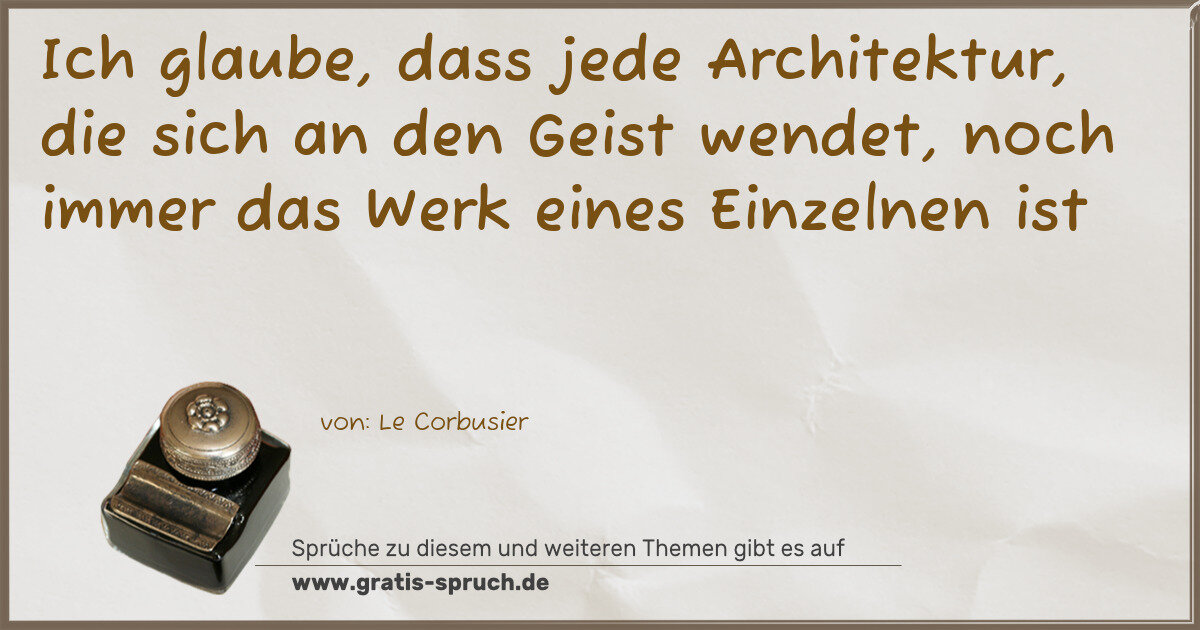 Ich glaube, dass jede Architektur, die sich an den Geist wendet, noch immer das Werk eines Einzelnen ist