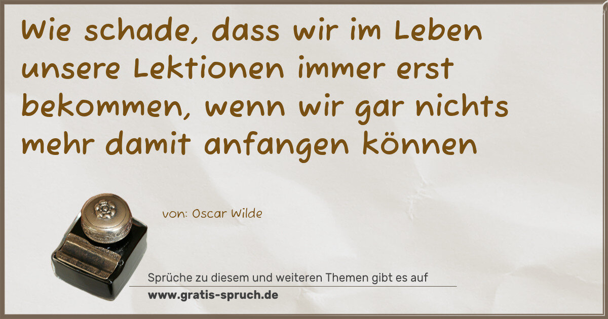Wie schade, dass wir im Leben unsere Lektionen immer erst bekommen, wenn wir gar nichts mehr damit anfangen können