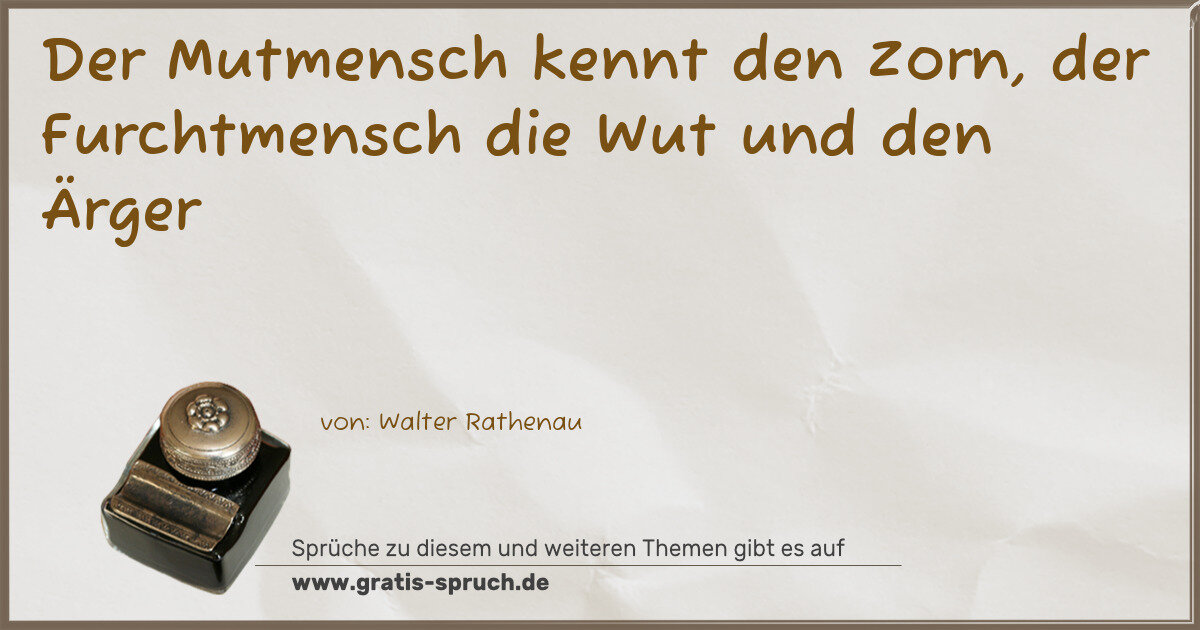 Der Mutmensch kennt den Zorn, der Furchtmensch die Wut und den Ärger