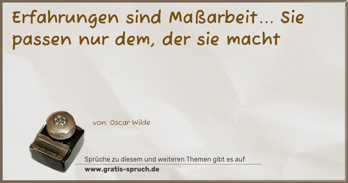 Erfahrungen sind Maßarbeit... Sie passen nur dem, der sie macht