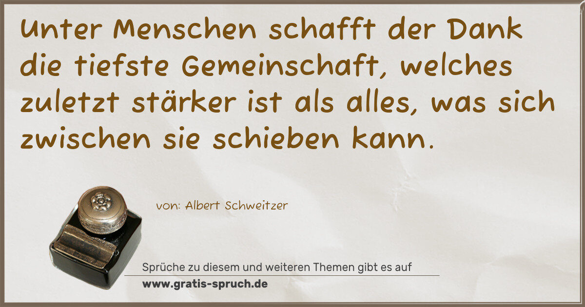 Unter Menschen schafft der Dank die tiefste Gemeinschaft, welches zuletzt stärker ist als alles, was sich zwischen sie schieben kann.