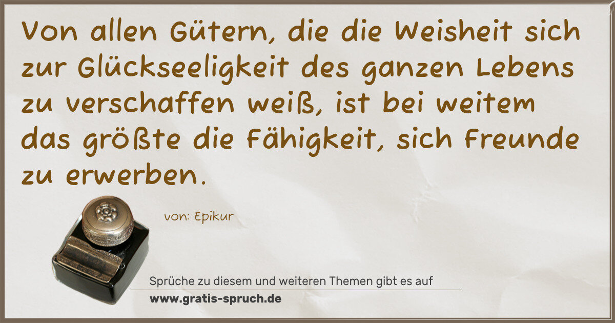 Von allen Gütern, die die Weisheit sich zur Glückseeligkeit des ganzen Lebens zu verschaffen weiß, ist bei weitem das größte die Fähigkeit, sich Freunde zu erwerben.