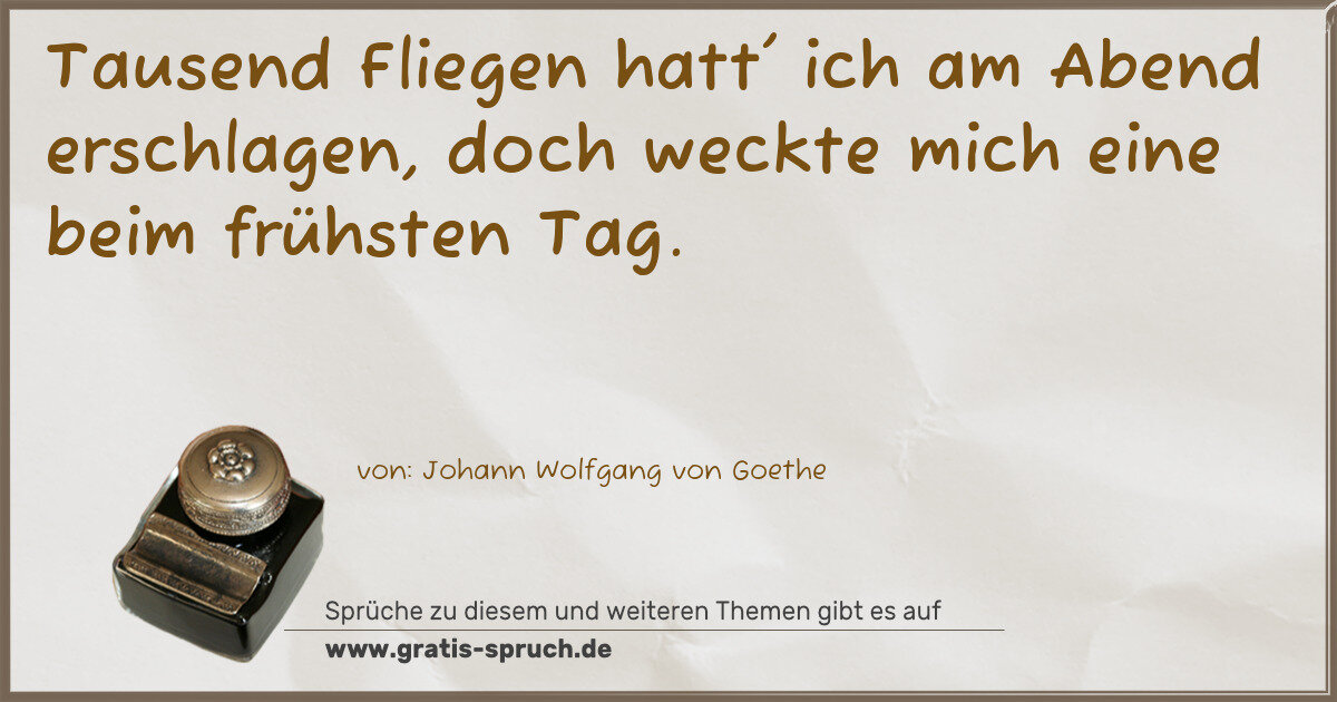Tausend Fliegen hatt' ich am Abend erschlagen, doch weckte mich eine beim frühsten Tag.