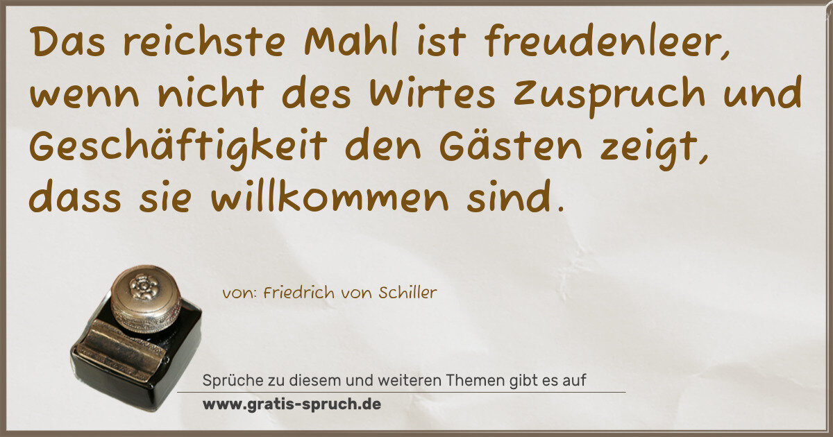 Das reichste Mahl ist freudenleer, wenn nicht des Wirtes Zuspruch und Geschäftigkeit den Gästen zeigt, dass sie willkommen sind.