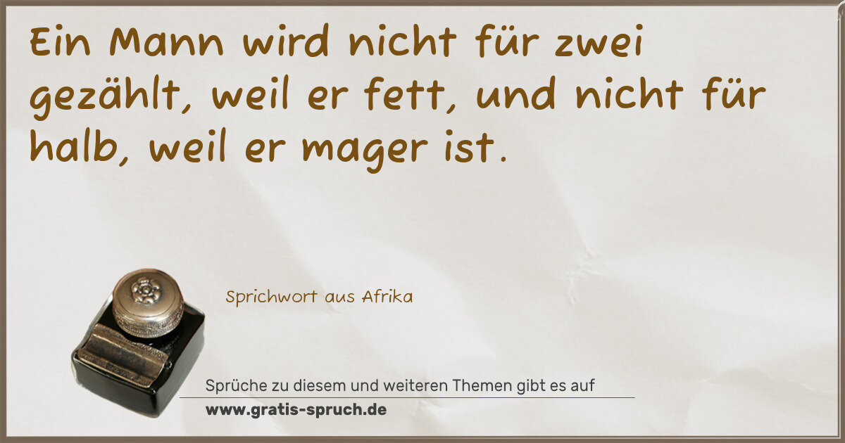 Ein Mann wird nicht für zwei gezählt, weil er fett, und nicht für halb, weil er mager ist.