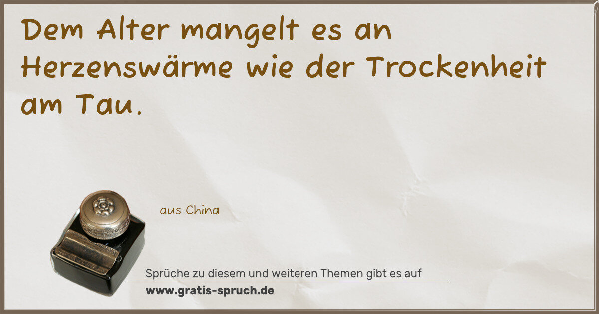 Dem Alter mangelt es an Herzenswärme wie der Trockenheit am Tau.