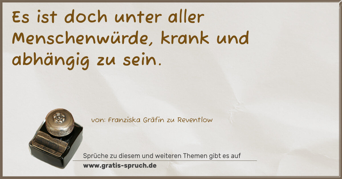 Es ist doch unter aller Menschenwürde, krank und abhängig zu sein.