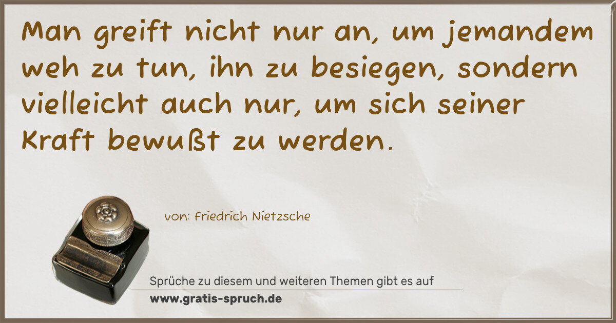 Man greift nicht nur an, um jemandem weh zu tun, ihn zu besiegen, sondern vielleicht auch nur, um sich seiner Kraft bewußt zu werden.