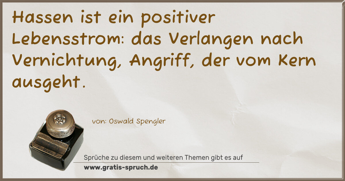 Hassen ist ein positiver Lebensstrom: das Verlangen nach Vernichtung, Angriff, der vom Kern ausgeht.