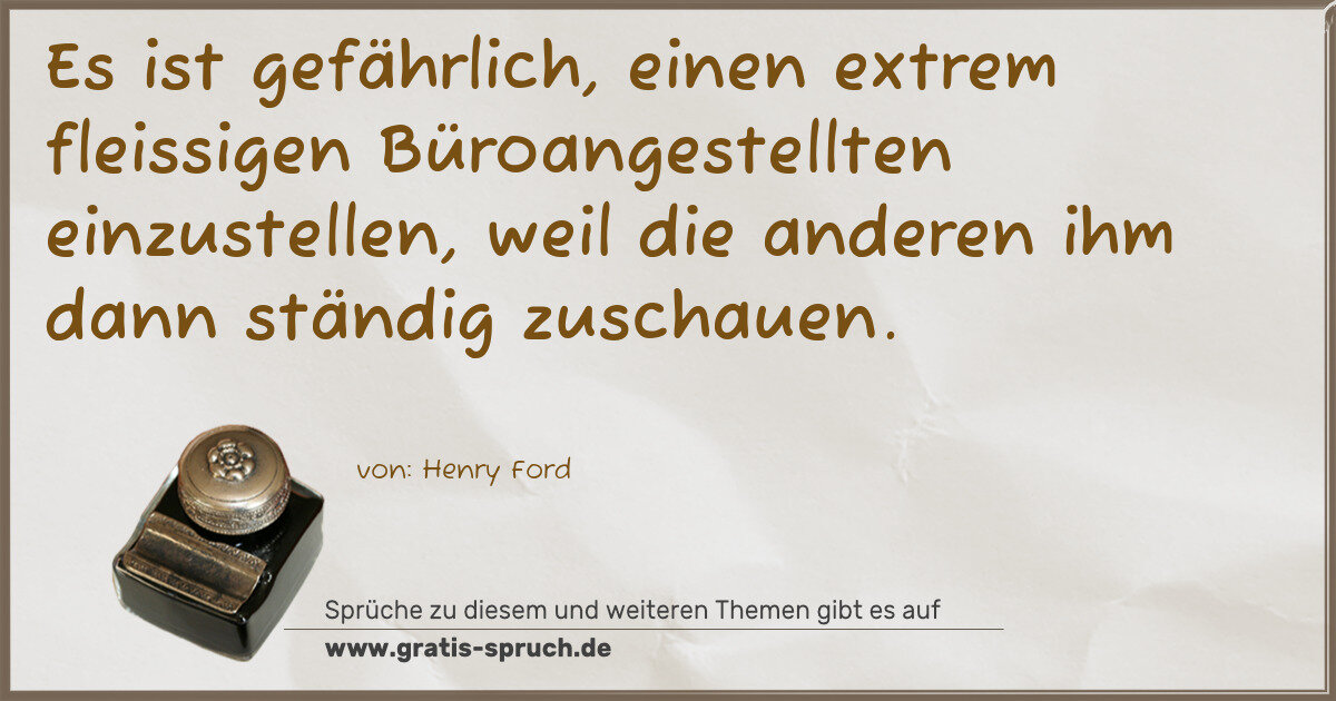 Es ist gefährlich, einen extrem fleissigen Büroangestellten einzustellen, weil die anderen ihm dann ständig zuschauen.