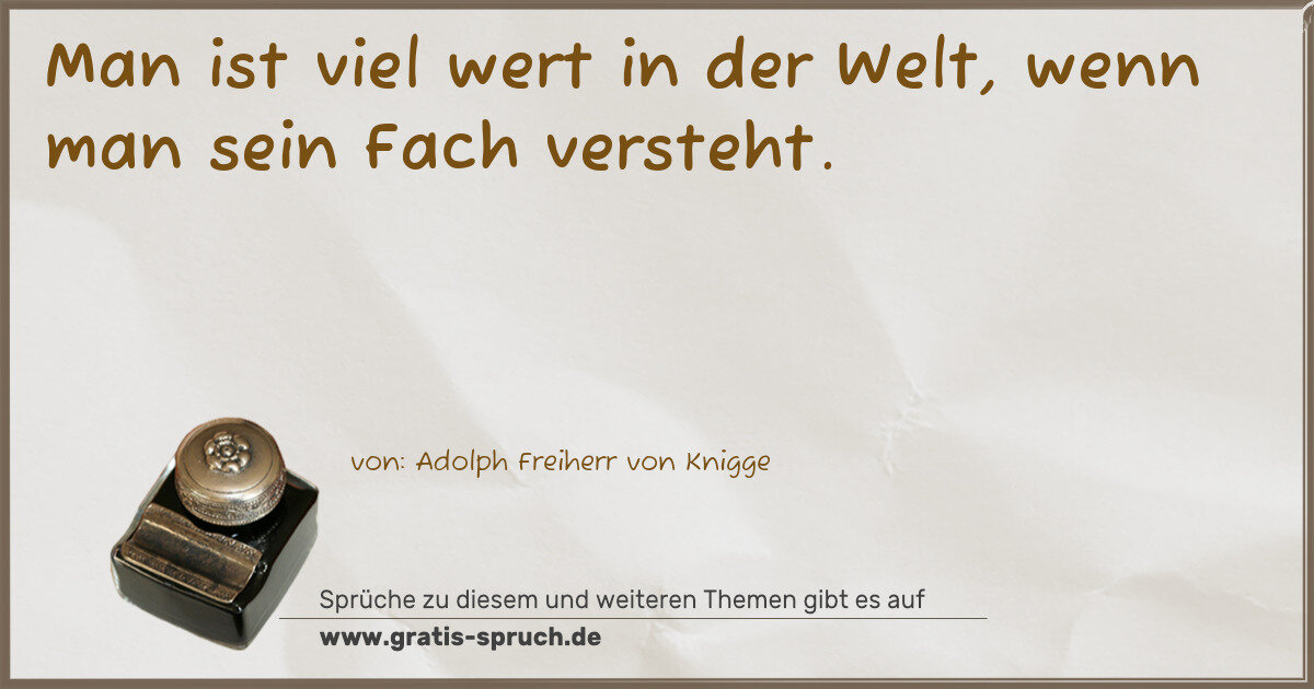 Man ist viel wert in der Welt, wenn man sein Fach versteht.