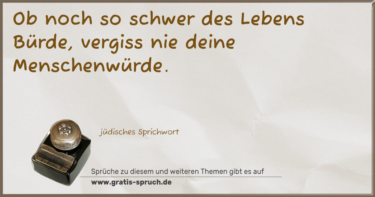 Ob noch so schwer des Lebens Bürde, vergiss nie deine Menschenwürde.