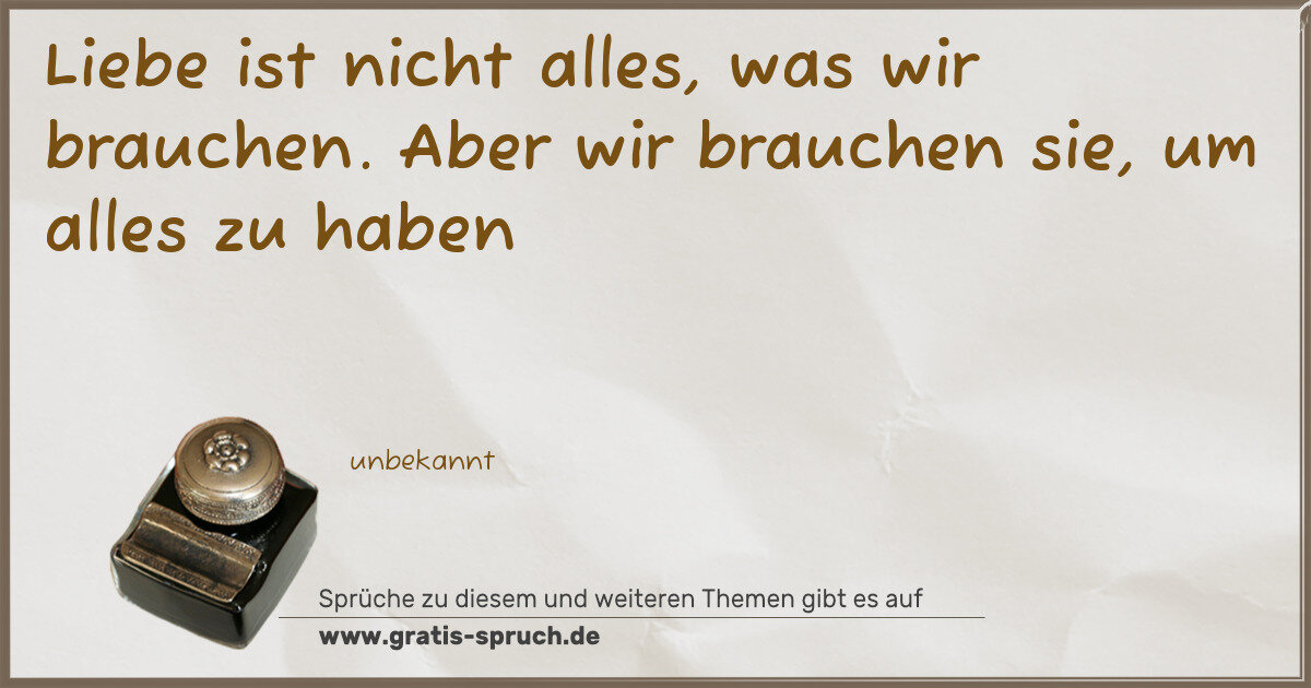 Liebe ist nicht alles, was wir brauchen. Aber wir brauchen sie, um alles zu haben
