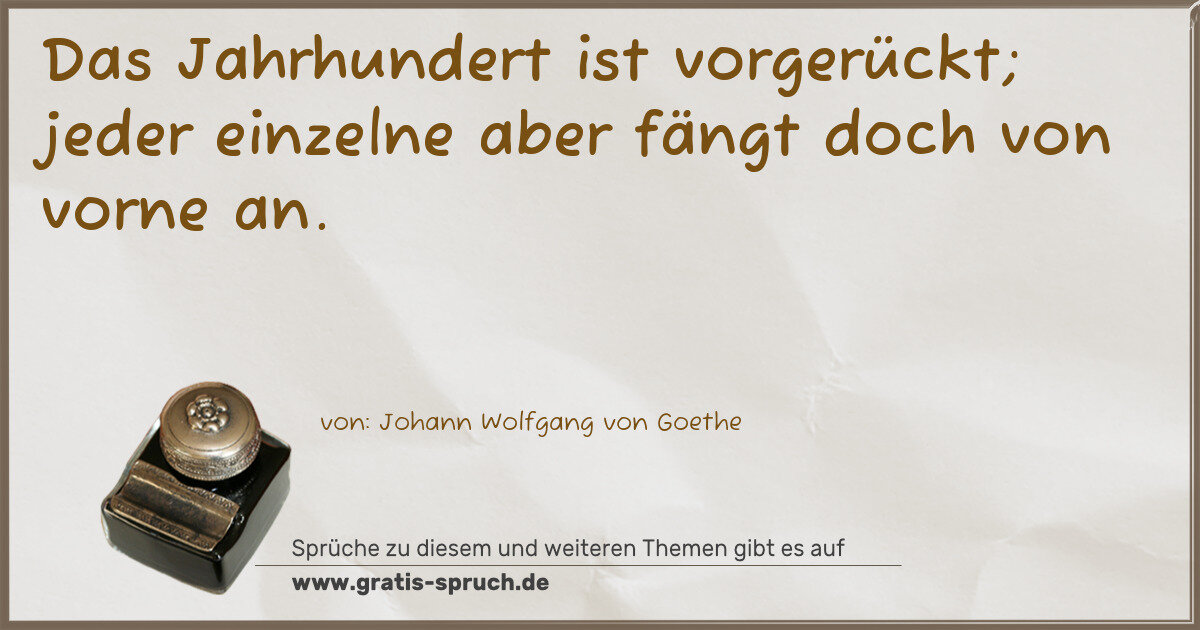 Das Jahrhundert ist vorgerückt; jeder einzelne aber fängt doch von vorne an.