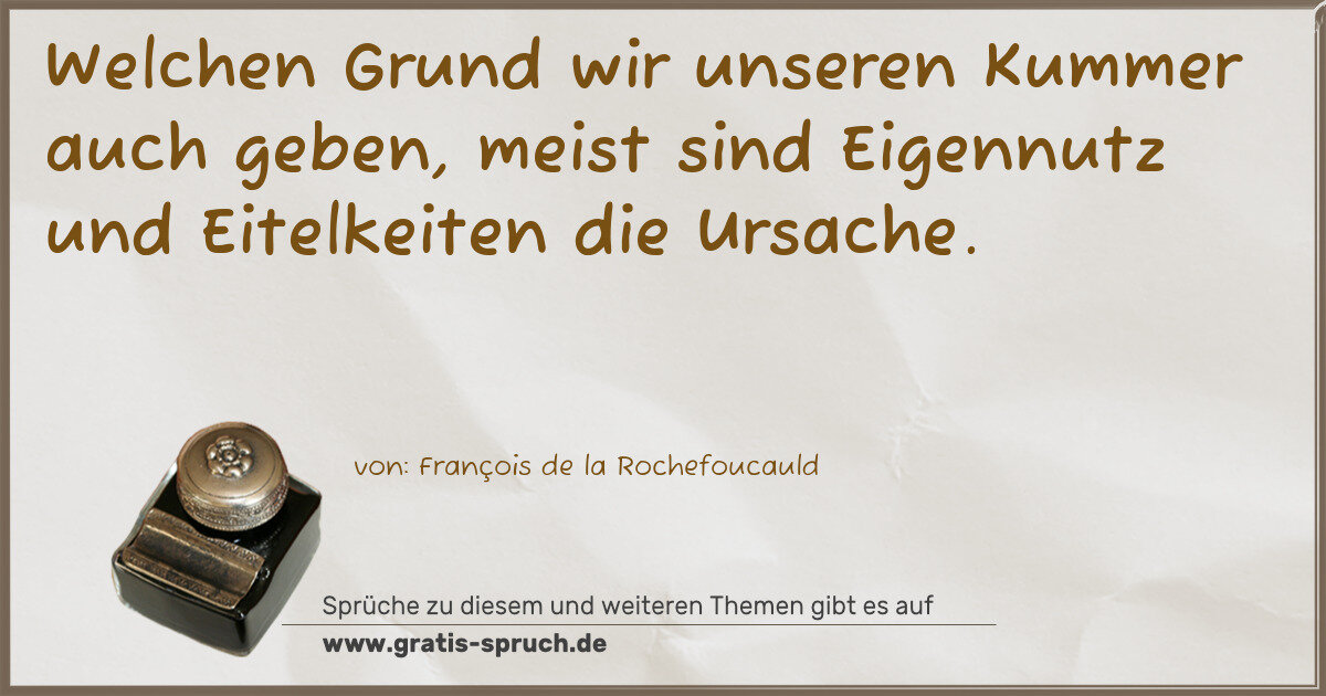 Welchen Grund wir unseren Kummer auch geben, meist sind Eigennutz und Eitelkeiten die Ursache.