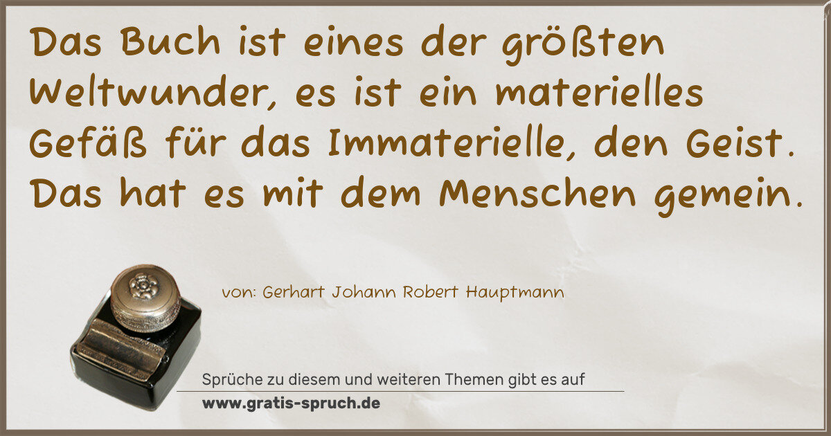 Das Buch ist eines der größten Weltwunder, es ist ein materielles Gefäß für das Immaterielle, den Geist. Das hat es mit dem Menschen gemein.