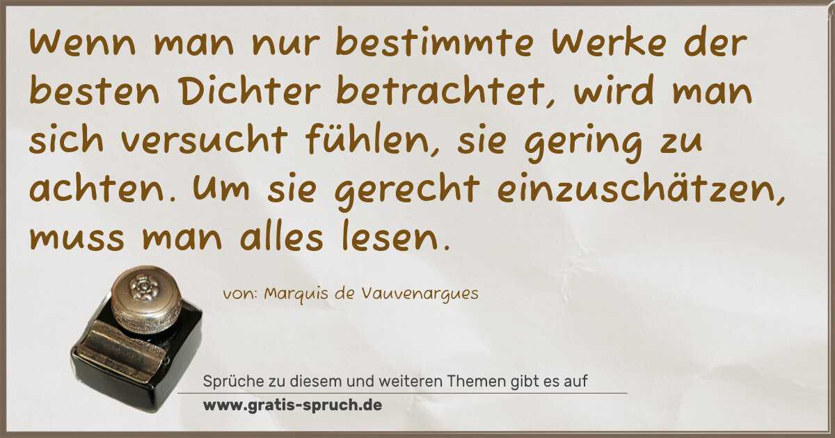 Wenn man nur bestimmte Werke der besten Dichter betrachtet, wird man sich versucht fühlen, sie gering zu achten. Um sie gerecht einzuschätzen, muss man alles lesen.