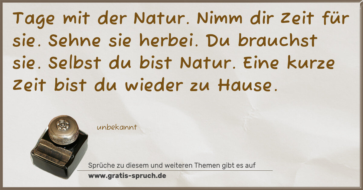 Tage mit der Natur. Nimm dir Zeit für sie. Sehne sie herbei. Du brauchst sie. Selbst du bist Natur. Eine kurze Zeit bist du wieder zu Hause.
